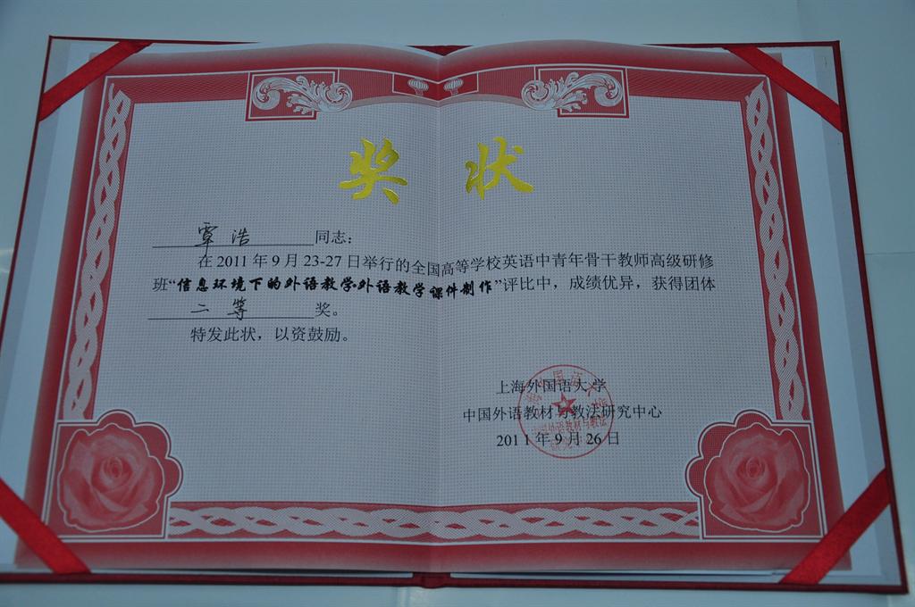 2011年9月22日-28日,上海外国语大学举办以“信息环境下的外语教学:理论与实践”为主题的“高等学校英语中青年骨干教师高级研修班”,我院外语系大学英语教研室副主任覃浩教师参加了本次培训。