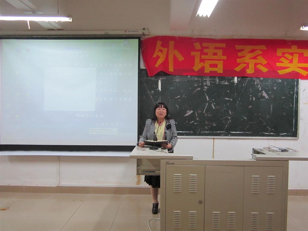 11月28日下午3:00于001教室成功举办了外语系08级英语教育方向实习总结大会,莅临此次总结大会的嘉宾有外语系主任蔡马兰老师,外语系主任助理、10级英语专业辅导员陈俊杰老师,08级英语专业辅导员韦微老师,09级英语专业辅导员庞菲老师,11级英语专业辅导员李张燕老师,11级越泰专业辅导员杨柳老师。参加本次总结大会的还有外语系08级英语教育方向的全体同学。