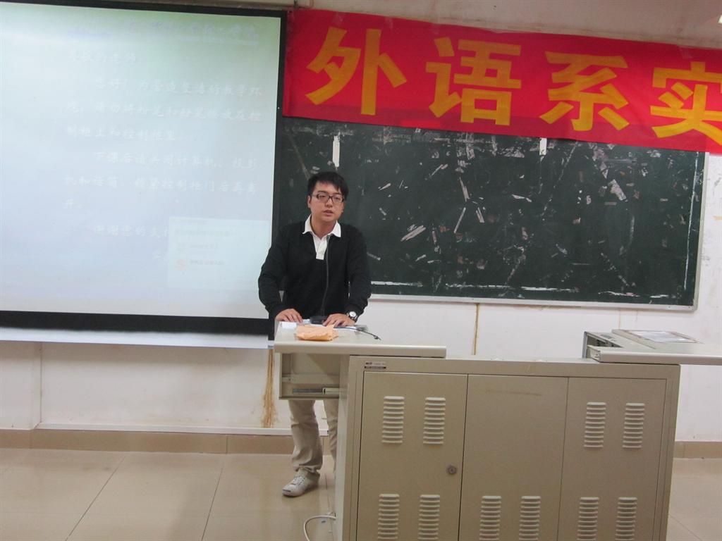 首先,由外语系主任助理、10级英语专业辅导员陈俊杰老师对实习归来的同学们表示祝贺。