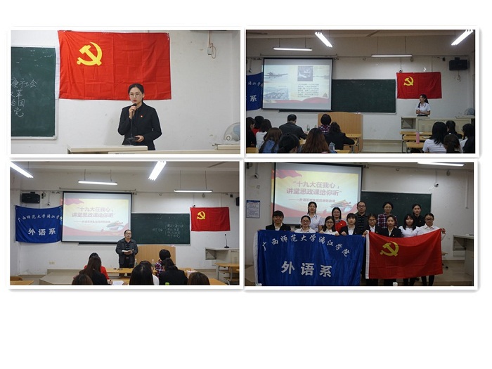 为深入学习贯彻党的十九大精神,推动习近平新时代中国特色社会主义思想进教材进课堂进头脑,打好提高学生党员思想觉悟的攻坚战,切实增强学生党员对思政课的获得感,外语系于4月26日晚上在1208教室举办“党的十九大在我心,讲堂思政课给你听”——外语系学生党员讲思政课比赛。