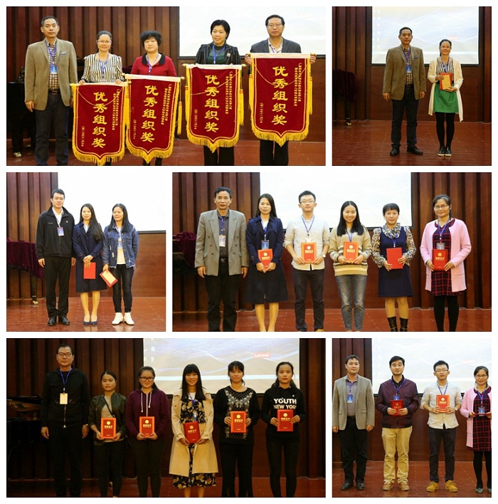 会议伊始,杨树喆校长为本次论坛致开幕辞,杨校长从漓江学院的办学历史、专业建设,人才培养以及校园文化等方面对学院近年来的发展进行了介绍,他肯定了外语系在协同育人方面取得的丰硕成绩并对协同育人单位在我校应用型人才培养过程中做出的贡献表示感谢,并祝愿此次论坛顺利举行。接下来,为感谢各协同育人单位对外语系协同育人工作的支持,外语系对优秀微课、优秀公开课、同课异构优秀组织奖、先进工作者的获得者进行了表彰。此次论坛中,三位分别来自雁山中学的雷丽娜老师,桂林市第八中学的林乐平老师,桂林市第十一中学的魏准姣老师做了发言。他们分别从20年教师职业感悟、教师自我发展和教学改革现状三个方面阐述了自己的观点。三位老师以他们在一线中学课堂丰富的教学阅历和深厚的知识积淀给外语系的广大师生上了一堂生动而充实的职业认同课,使同学们受益良多。