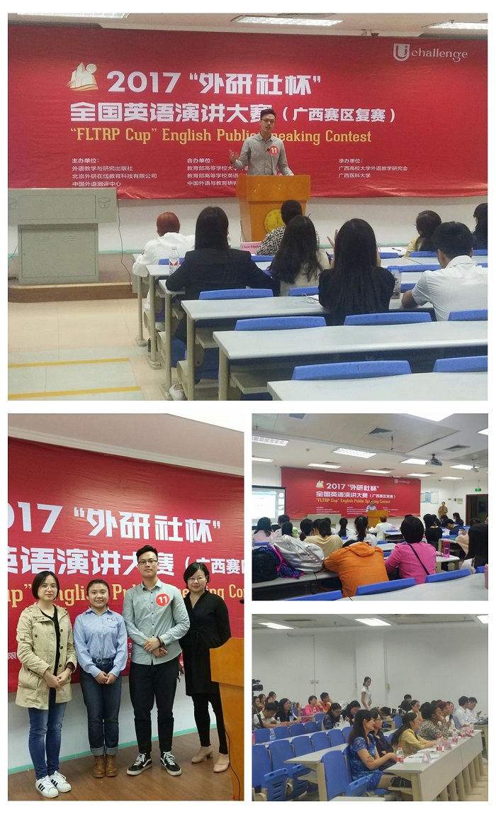 根据“外研社杯”全国英语演讲比赛组委会有关文件精神要求,广西高校大学外语教学研究会于近日在广西医科大学举行“外研社杯”全国英语演讲比赛广西赛区复赛。我校外语系2016级英语专业学生莫禹桐、2015级翻译专业学生冯程程在区级复赛中表现优异,分别获得广西赛区复赛二等奖和三等奖。