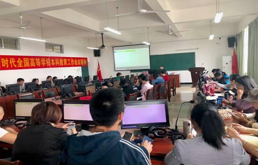 2018年10月10日下午,外语系在3411教室召开了学习“新时代全国高等学校本科教育工作会议精神”的专题讲座。外语系全体教职工参与此次讲座,会议由外语系系主任何玲老师主持。