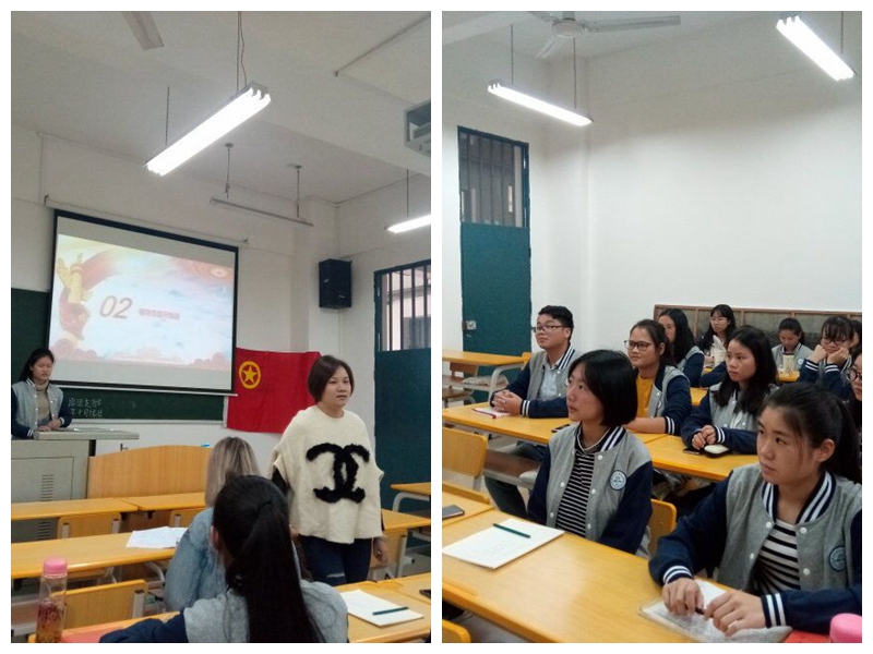 2018年10月17日下午,我团支部在2210教室召开此次活动。通过此次活动不仅仅是学习到了有关共产党的各项规章制度和先进思想,还从辅导员庞菲老师的发言中让我们学习到了很多东西。她说,党的建设和发展离不开成员的代谢与更新,离不开科学知识和经验的不断积累。高校学生正是党的优秀后备军,学生党员作为新一代知识分子的代表,必将成为党的优秀代表,必定是新一代人中党内发展的中坚力量。在校内开展党建活动能够增强学生党员的党性思维、社会责任感和奉献精神,为党的建设与发展注入新思想新动力。