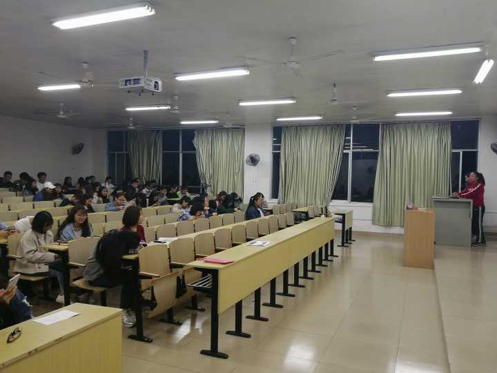 为迎接广西壮族自治区成立60周年,更好地营造校园安全环境,12月2日晚,外语系2016级英语类在1404教室召开“喜迎区庆,筑校园平安“主题会议,会议由辅导员韦微老师主持。