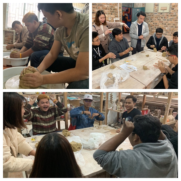 2018年12月19日下午,2018级泰国留学生共四十四人在任课教师的带领下,分两组到艺术设计系陶艺工作室开展中国陶艺文化体验活动。我系2015级泰语专业十一位同学前往协助翻译。
