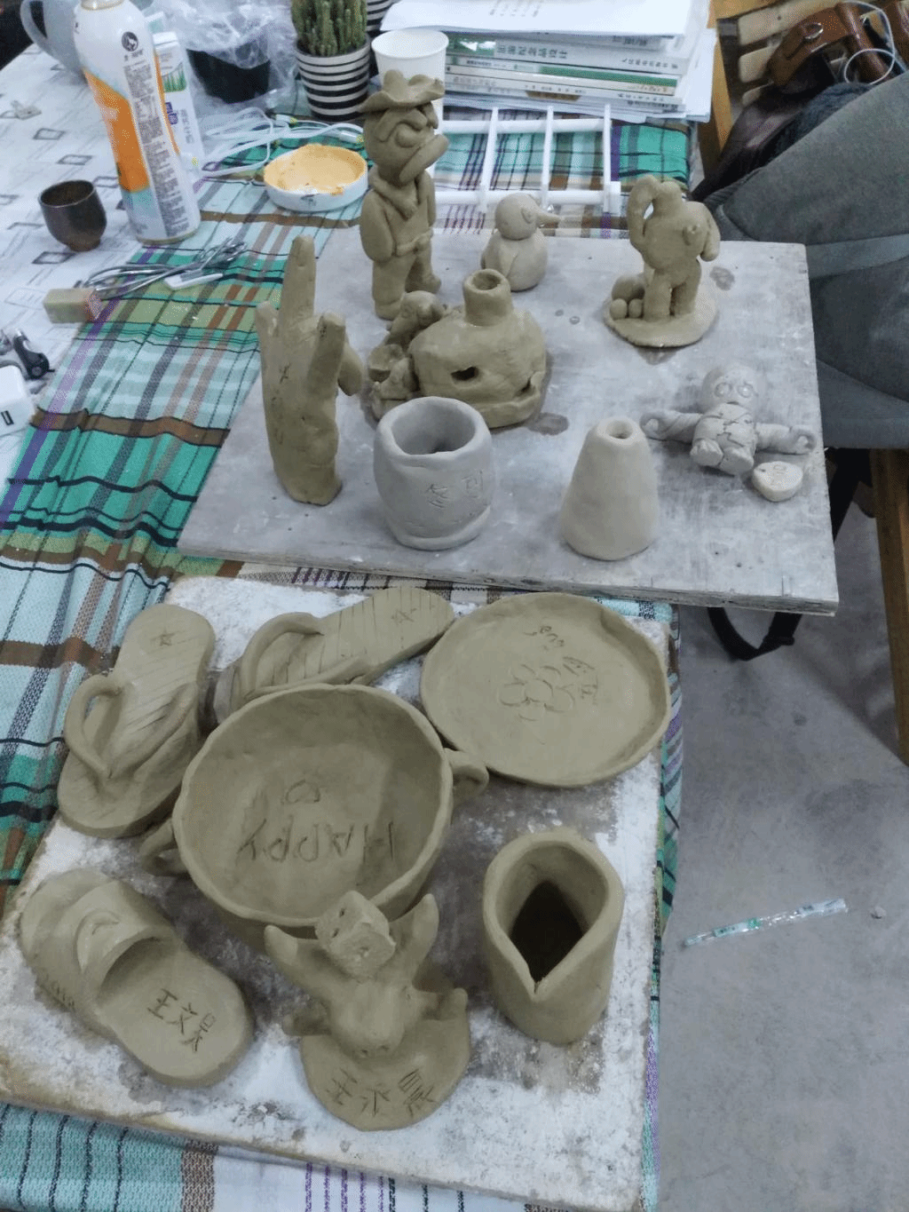 体验活动中,公共艺术教研室主任郇树海老师对传统陶艺基本知识和操作技法进行了简单介绍并亲手示范,通过捏、搓、拉、压等流畅的手法进行即兴创作,让留学生门眼界大开,目睹了艺术创作过程中的无穷魅力。之后,郇老师便开始和学生助理们一起指导留学生动手体验。留学生对陶艺制作充满着好奇,纷纷动手设计、制作自己的作品,且一个个心灵手巧,半小时的功夫就做好了别具特色的陶艺作品,并在刻上自己的名字或做上标记,打算日后将其带回国去留作纪念。