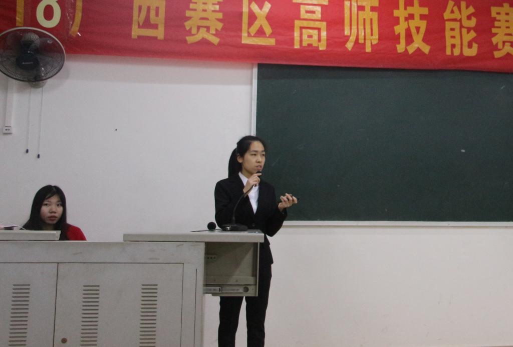 12月19日晚,2018年全国高师学生英语教师职业技能竞赛决赛在1412教室顺利举行。本次比赛邀请了外语系教师陆海峡、覃浩担任评委,由麦惠婷担任主持。此次大赛分为初赛与决赛,经过第一轮的初赛后共有11名选手进入决赛,一级有5名,二级有6名。