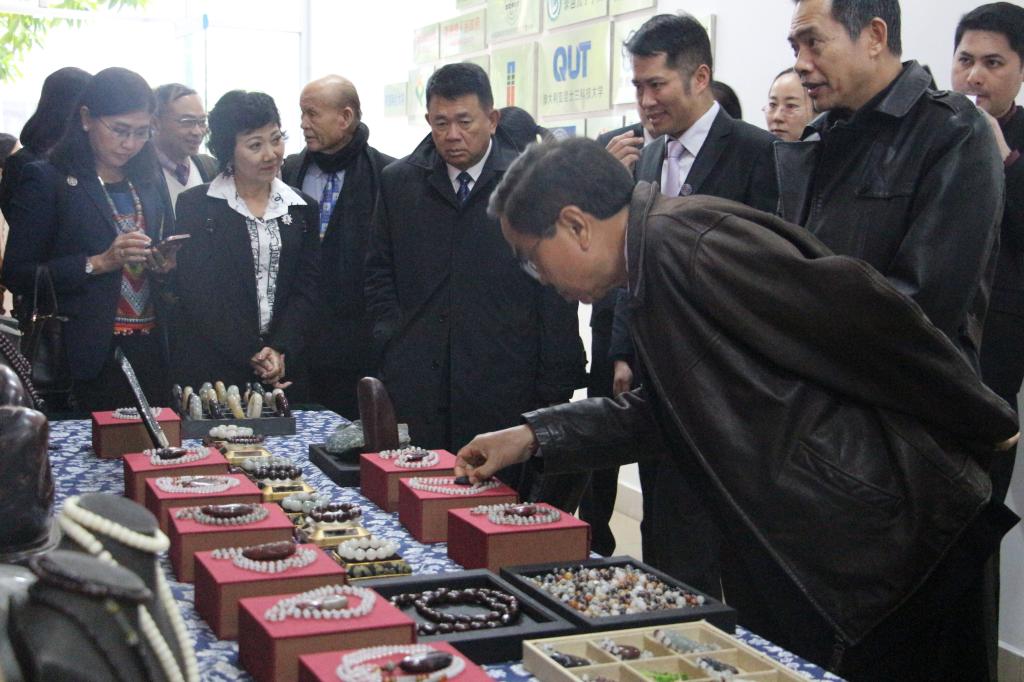 图:泰国代表团欣赏中国鸡血玉