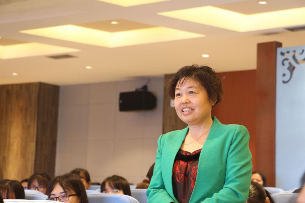 在老师同学们热烈的掌声中刘玉红博士开始了本次讲座。讲座期间,刘玉红博士用轻松幽默的话语营造了一个愉悦的氛围。她首先是从英语课程教学方面讲了“三义三向”性质后再向为教师学生落实了“三义三向”文本分析法。其次向我们展示了“三义三向”带来的成果和教师获得的获奖证书以及奖章。讲座最后博士设置了提问环节,她也用自己的见解和经历解答了老师同学们的疑惑。本次讲座内容涉及面广,老师同学们受益匪浅。