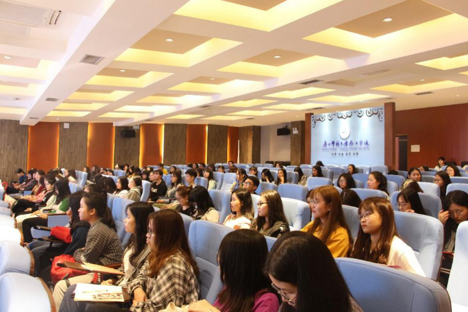 在漓江学院建校十八周年之际,我校特举办学术活动迎接学校十八周年生日。同时为提高语言文学学院教师教育类课程教师以及英语专业学生英语语言文学综合素养。4月18日晚7点,语言文学学院邀请到广西师范大学刘玉红博士在至善讲堂做“三义三向”文本法分析讲座。本次讲座由何玲院长做主持人。漓江学院党委书记唐文红书记出席讲座。我院教师教育类课程老师和16级英语专业全体学生以及17级英语3班4班学生参加本次讲座。