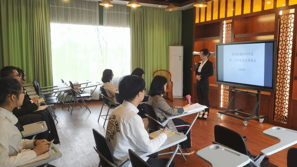 答辩会上,答辩委员从选题意义、研究方法、数据分析、论证逻辑等各个方面对答辩人进行了严格考核。越南语专业学生沉着稳定,总体表现不错,但仍暴露出论文格式方面不够规范,行文方面不够严谨的问题。