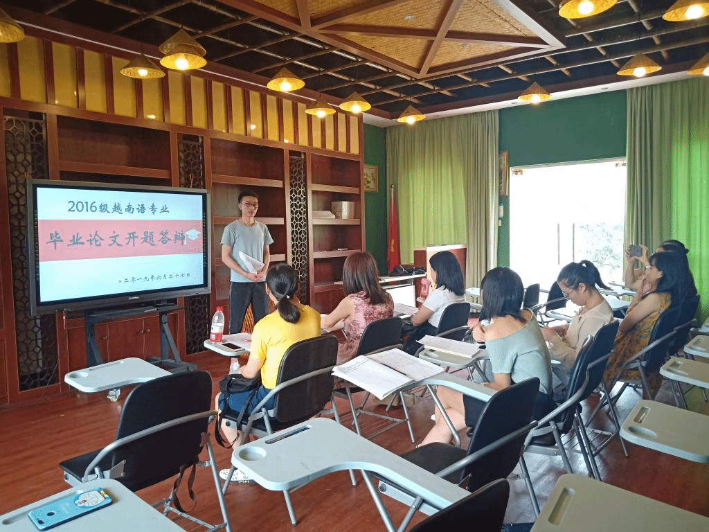 由于越南语专业的办学特色,本专业毕业论文形式分为两种,一是论文写作,二是文学作品翻译。通过在越南留学实习期间的学习和准备,同学们依照个人的兴趣爱好以及所擅长的领域选择了不同的形式,并顺利完成毕业论文前期选题和开题报告撰写,在完成越南学习任务回校后就开始着手准备开题答辩。