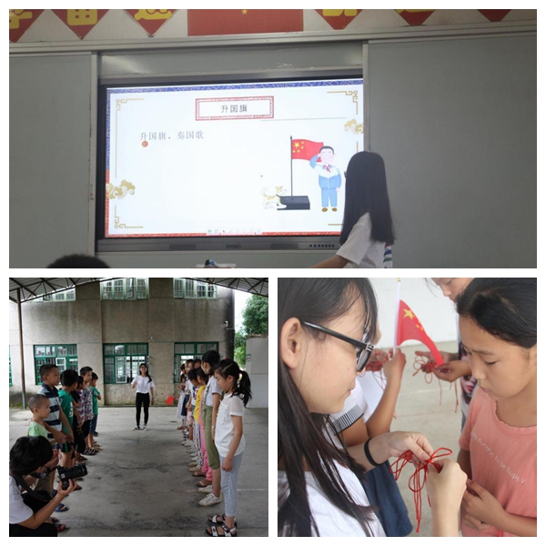 本次暑期三下乡社会实践活动丰富多彩,语言文学学院同学们与灵川县九屋镇祠堂小学的学生度过了一次充实而有意义的暑假假期。整个三下乡活动中被精心设计与安排,带给同学与孩子们不一样的身心体验。语言文学学院同学们结合团队成员自身中文专业的特色,开设书法课程,让孩子们在书法中感受传统文化的魅力,加深孩子们对文化知识的理解。为加强孩子们的爱国教育,全校共上一堂爱国主义教育课,通过视频的播放与同学们的讲解,培养了孩子们的家国情怀与热情,也增强了同学们的爱国主义的意识。紧接着,同学又和孩子们讲解五星红旗、国歌等故事。在班会课上,组织开展了筑梦座谈会,让孩子们畅所欲言讨论梦想。课后同学们又以“一对一”走访特困孩子家庭的形式了解孩子们的现状和梦想,对此减少孩子们心里的顾虑,让他们快乐学习与成长。此外,为进一步树立文化自信,同学们还教孩子们编织中国结,不仅学习了中国民间传统工艺,还使同学和孩子们对自身文化生命力量和文化发展前景有了坚定的信念。课余之间,同学们还与孩子一起玩素拓小游戏,这不仅增进了彼此之间的感情,还培养了整个团队协助能力。