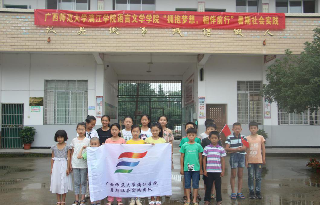 为深入学习贯彻习近平新时代中国特色社会主义思想,增强广大青年学生责任感和使命感,2019年7月6日-2019年7月11日,语言文学学院以“拥抱梦想,相伴而行”为主题在灵川县九屋镇祠堂小学开展了一次支教活动,希望在实践中将爱国教育知识传授给灵川县九屋镇祠堂小学的学生。