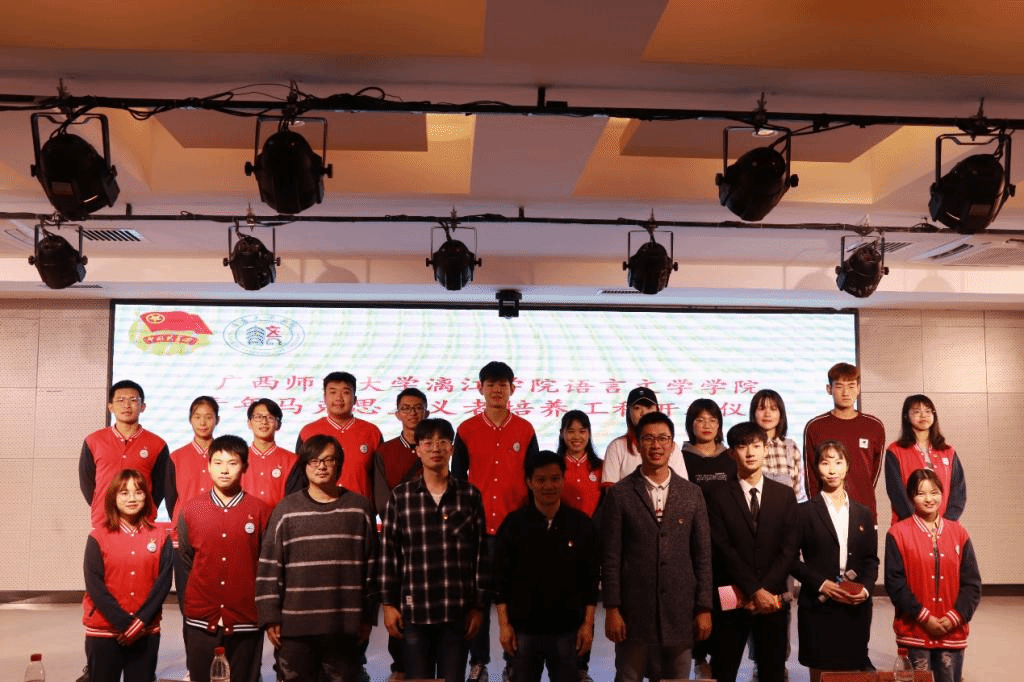 为深入学习贯彻习近平新时代中国特色社会主义思想,加强对青年的思想政治引领。语言文学学院团总支学生会于2019年11月3日在至善讲堂举办了“青年马克思主义培养工程”开班仪式。参与本次活动的嘉宾有语言文学学院党总支书记江仿老师、党总支副书记韦微老师、各级各专业辅导员以及各级各专业的优秀团员们。