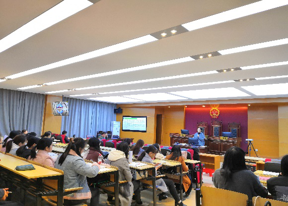 不忘初心、牢记使命,我校语言文学学院用系统的实际行动点燃了寒冬里的工作激情。11月27日下午2点至4点50分,主题为“能力导向,竞赛驱动,促进语言文学学院专业建设”的本学期第三次教学改革研讨会在我校模拟法庭隆重召开。本次会议由副院长张超锋老师主持,内容丰富充实,包括本学期几大主要竞赛、教学改革成果展示和专题分组讨论及汇报两大环节。
