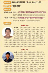 三、专题线上研修。为促进师德师风建设,本教研室教师利用周末休息时间,于3月28日、29日积极参加外教社和复旦大学出版社的线上研修活动,聆听讲座包括上外赵鸣岐教授主讲的《关于推进课程思政的教学理念与方法》、王岚教授的《课程思政与外语教学的有机结合》;复旦大学蒋玉龙博士的《全在线原位翻转教学—先进理念、技术与实践的完美结合》、郑咏滟博士的《<比较文化研究>--全英文课程思政的设计与授课经验分享》。