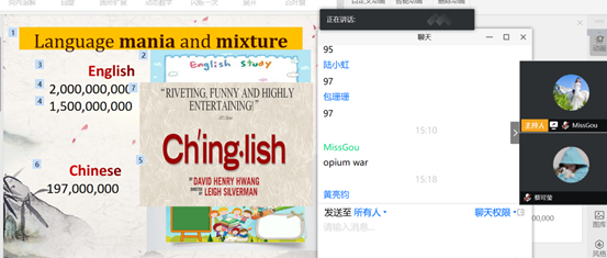 图:缑娅兰老师利用腾讯会议进行公开课展示