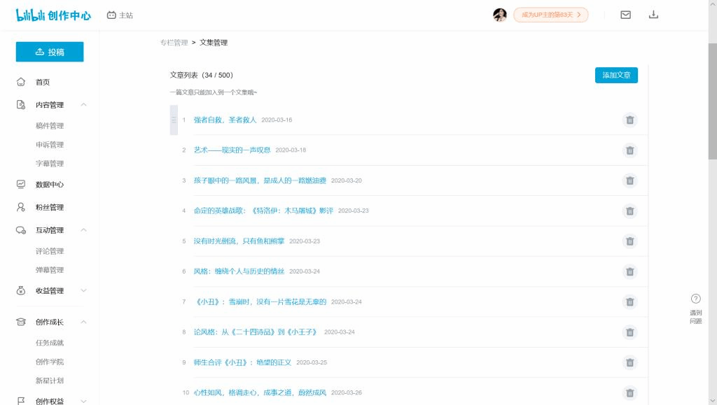 图:学生在哔哩哔哩官方网站上的专栏投稿