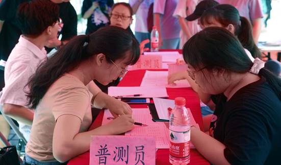 本次活动在乐善广场举行,活动形式多样,得到了同学们的一致认可,现场师生将近三百人。活动区域分为普测区、活动区、展示区。在普测区,有国家专业普通话测试员李钰老师、省级专业普通话测试员陈锴老师和钟锟老师为同学们模拟普通话测试,并指出存在的问题,转变同学们对普通话固有的看法,真正让推广普通话落到实处。活动区有着各式各样的语言文字游戏,笑声连连,同学们在玩乐中走进语言文字。在展示区,半步斋书画社的同学现场挥毫泼墨,以优美的汉字展示中华语言的独特魅力。