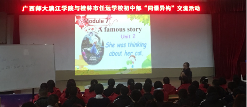 任远中学实习点的同课异构活动在11月25日上午开始,由任远中学初中部英语老师曾天凤和我院英语专业实习生廖兰承对初中八年级上Module 7 Unit 2 She was thinking about her cat分别进行授课。虽然课程内容一样,但两位老师根据自己的实际和理解,上课的结构、风格、采用的教学方法和策略不同,构成了同一内容用不同风格、方法、策略进行教学的课,给教学研讨提供了参照和比较,引发参与者智慧的碰撞和思想的交流。
