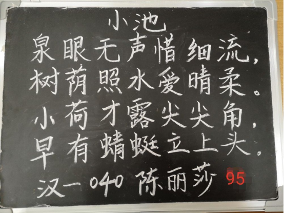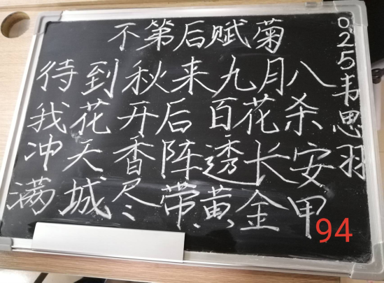 书以载道,粉笔抒情,写好粉笔字是每位师范生必须具备的基本技能之一,粉笔字书写的质量,对今后师范生从事教师行业具有重要影响。为了强化我院汉语言文学专业学生重视粉笔字书写质量的意识,切实提高板书技能水平,中文教师教育教研室开展了教师技能黑板字专项训练活动,由本院师范生职业技能指导老师——潘冠海、赵荣新、陈霞、曾强四位老师,根据书写规范、行笔运笔、间架结构、章法布局等标准对汉语言文学专业学生的黑板字作品进行指导与评选,并将优秀的黑板字作品展示学习。