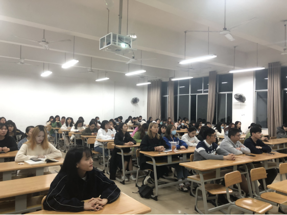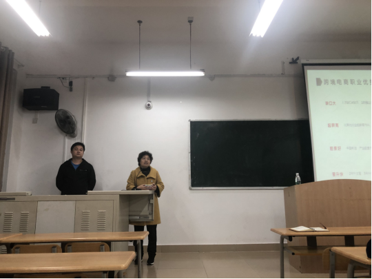 2021年4月18日晚19:30,为了让同学们对跨境电商实习就业进一步地了解,语言文学学院邀请了513电商学院的项目总监周晓峰于1215教室对2018级商务英语、英语(翻译)、泰语专业全体同学召开了就业实习宣讲,出席此次会议的还有语言文学学院何玲院长、辅导员郑克晓老师。