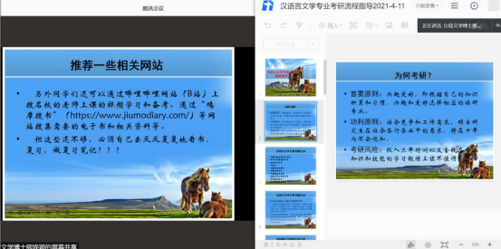 4月11日,语言文学学院组织开展2018级汉语言文学专业考研线上讲座。主讲人为学院专任教师熊焕颖博士,2018级汉语言文学专业学生积极参加了本次讲座。