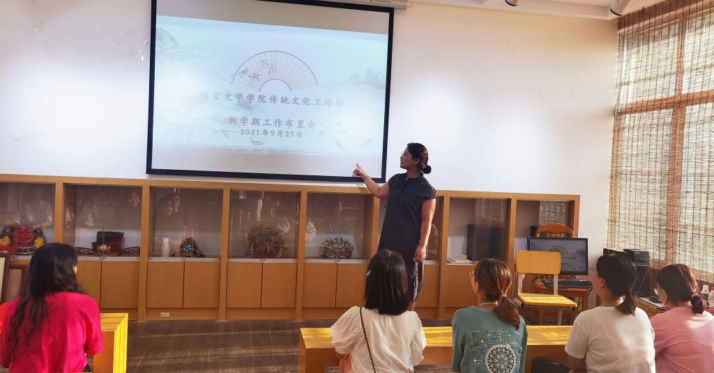 2021年9月25日下午,语言文学学院传统文化工作坊于非遗传承实训室3105召开新学期布置会。指导老师李晓蕾对于工作坊上学期的活动做了总结,并就下学期的工作进行部署安排。