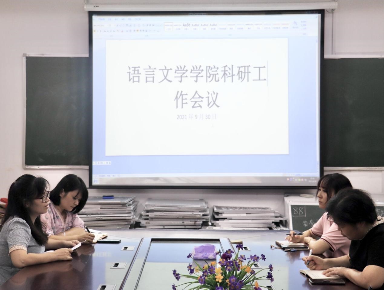 9月30日,语言文学学院于2108会议室召开科研工作会,语言文学学院院长何玲、副院长陈锴,合作发展处处长秦丽芸,学院各教研室专任教师及各专业辅导员参加本次会议。