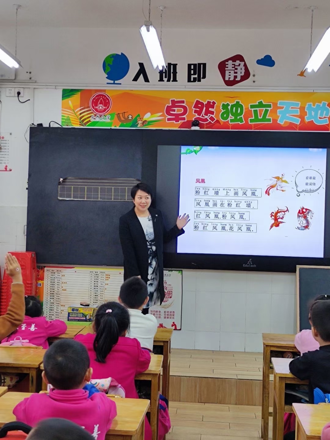 活动围绕主题展开,形式丰富多彩,既有趣味语言文字游戏、口部操、手语操,也有针对方言易错字词进行绕口令训练、古诗词朗诵,使小学生在“看、学、读、跳”中感受通用语言文字魅力,提升“讲好普通话”的意识。通过规范字与错别字的对比、练习正确的书写坐姿和握笔姿势、学习规范字书写笔顺等活动,激发小学生认真书写规范字的热情。本次活动响应“请党放心,强国有我”的号召,在朗诵环节选取体现红色精神的内容,向小学生宣扬爱国主义精神,鼓励他们争做“红色少年”。卓然小学叶校长全程参与活动并高度赞扬,她认为本次活动让小学生们在玩中学,在快乐的同时收获知识,也提升了全校师生说普通话、写规范字的意识,受益匪浅。