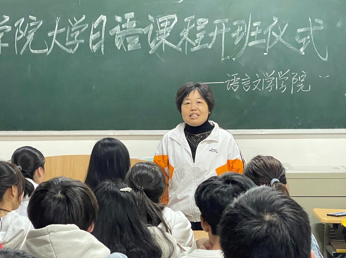 仪式最后,语言文学学院院长何玲做总结发言。她表示,学院依照教育部《大学外语教学改革指南》文件,了解同学们的需求,进行有利于学生的改革,今年第一次开设大学日语课程班。本次开班离不开学校领导的大力支持,更离不开同学们的配合,并预祝本次开班仪式圆满结束。各位领导老师们的讲话获得了同学们的热烈掌声,在一片和谐的氛围中,仪式圆满落幕。