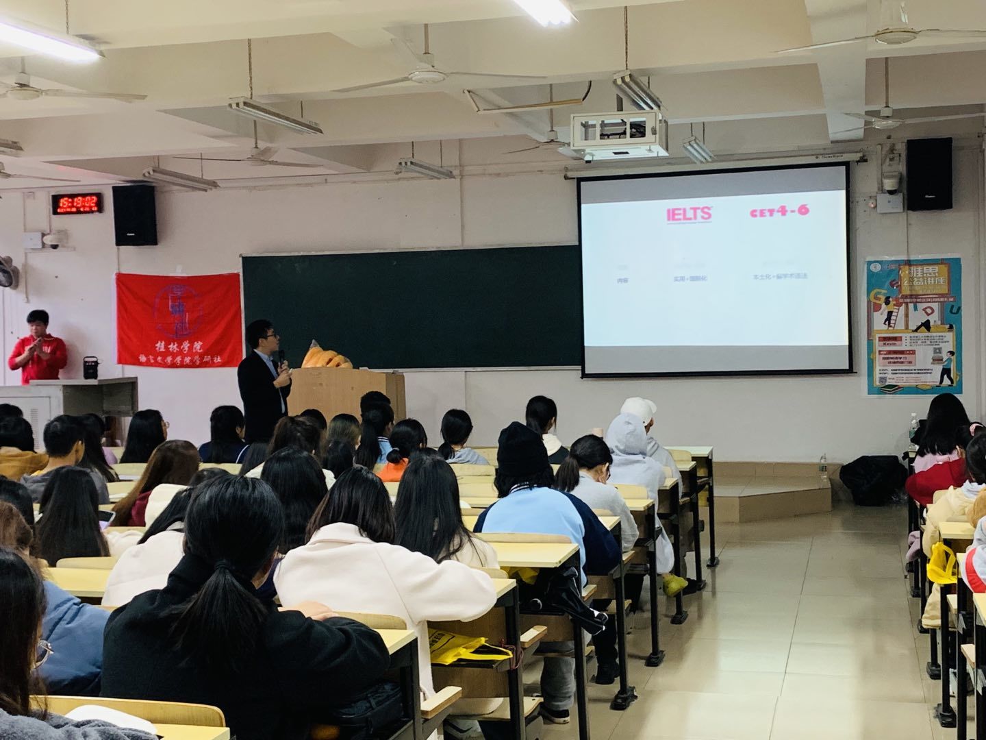 为了解决同学们对于留学考研与雅思考试的疑虑,我校语言文学学院学研社特邀于士华老师于11月20日下午在至善楼1207教室举行了以“雅思留学考研学习”为主题的讲座,讲座吸引了来自不同专业有留学意向和渴望提高英语水平的同学前来。