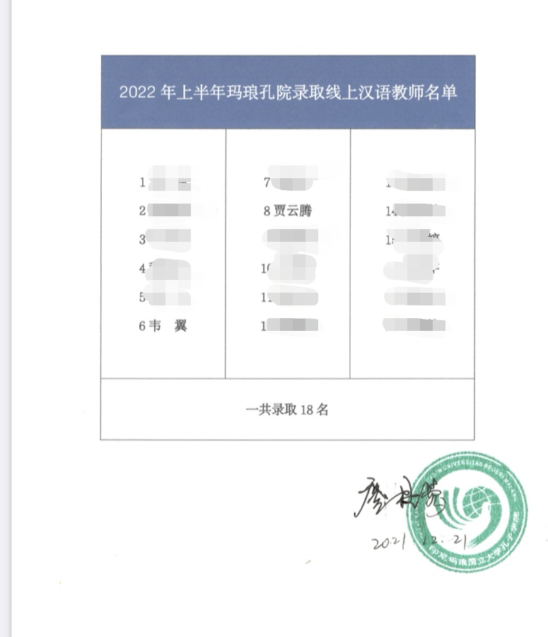 喜讯!我院2018汉语国际教育专业学生获得印尼玛琅国立大学孔子学院线上汉语教师资格