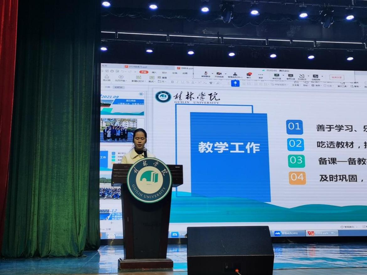 实习组组长潘冠海老师对同学们实习工作做了简要概述,他从实习过程中的教学方法、工作态度等问题进行讲述,表达了学院以及实习单位对同学们教育实习工作的肯定;同时也建议同学们摆正心态、积极就业,主动投身到教育事业中。