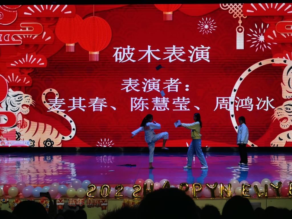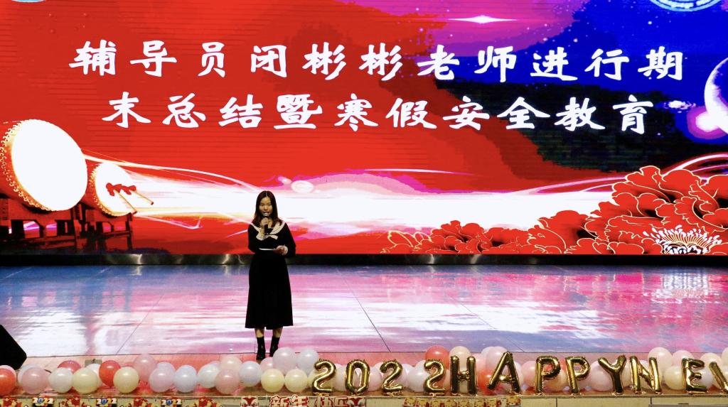 会议伊始,由年级生活委林喜玲同学为我们做本学期的年级费消费开支总结报告。生活委员通过细致的工作报告让同学们更进一步了解年级的费用情况。随后,到同学们都翘首以盼的节目表演环节。节目表演形式丰富多彩,有精彩的歌曲串烧和组合歌曲演唱,有感人的红歌合唱,有趣味无穷的配音秀,也有眼前一亮的破木表演等等,同学们的表演富有青春活力,点燃了现场的气氛。在各位同学精彩的才艺展示之后,辅导员闭老师上台给同学们做本学期的工作总结同时进行假期安全教育,强调有关事项和要求。一、注意防疫安全;学生出行期间要求全程佩戴口罩及一次性手套,按防疫要求严格做好个人防护,减少不必要的外出,不前往中高风险地区,尽量避免到人员密集场所或景区,如出现发热、咳嗽等症状,要及时报告当地,并立即到定点医院诊治。二、加强日常安全教育;注意交通安全,防范网络诈骗,科学合理安排假期生活,谨防参加传销活动。三、加强遵纪守法和文明礼仪教育;不参加任何形式的封建活动,杜绝浪费行为,过一个文明平安春节,做守纪文明的大学生。四、离校注意事项;要求同学们在离开寝室前对寝室进行卫生清扫,关好门窗,切断寝室内所有电源,全面检查排除安全隐患,妥善保管个人贵重物品。