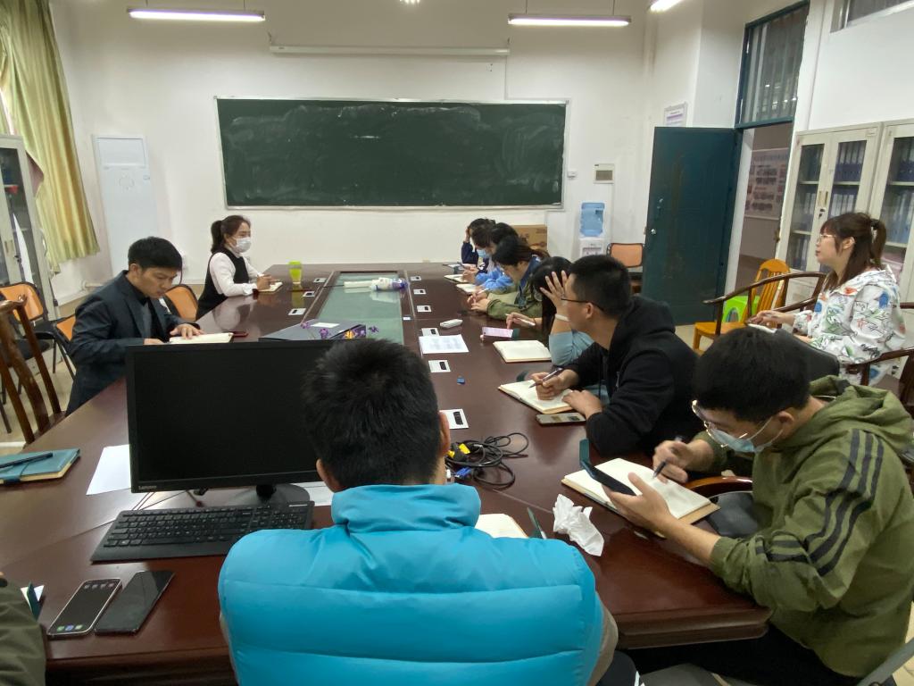 会议伊始,由韦微副书记围绕学院学生考研情况、学生就业、学生反诈中心APP下载情况、疫情防控形势等四大方面展开详细说明。要求各位辅导员要严抓学生预防电信诈骗安全学习工作;其次是强调疫情防控期间学生外出审批要严格遵守学校的相关文件要求;最后对2022届毕业生就业相关工作进行部署。