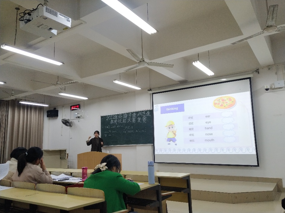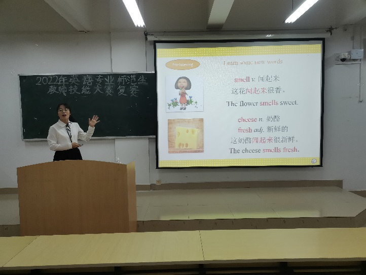 为进一步增强师范生实践应用能力和创新能力,彰显师范特色,强化学生教学技能,4月19日晚,2022年英语专业师范生教学技能大赛复赛在1307教室圆满落幕。