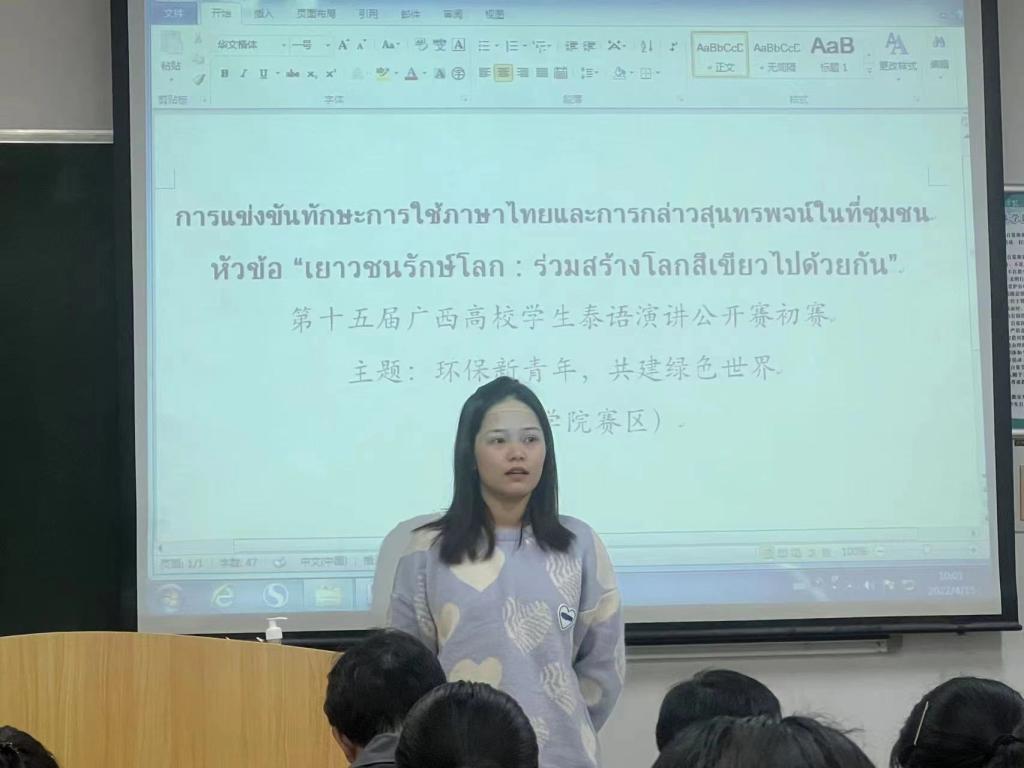 泰语专业教研室举办第十五届广西高校学生泰语演讲公开赛初赛