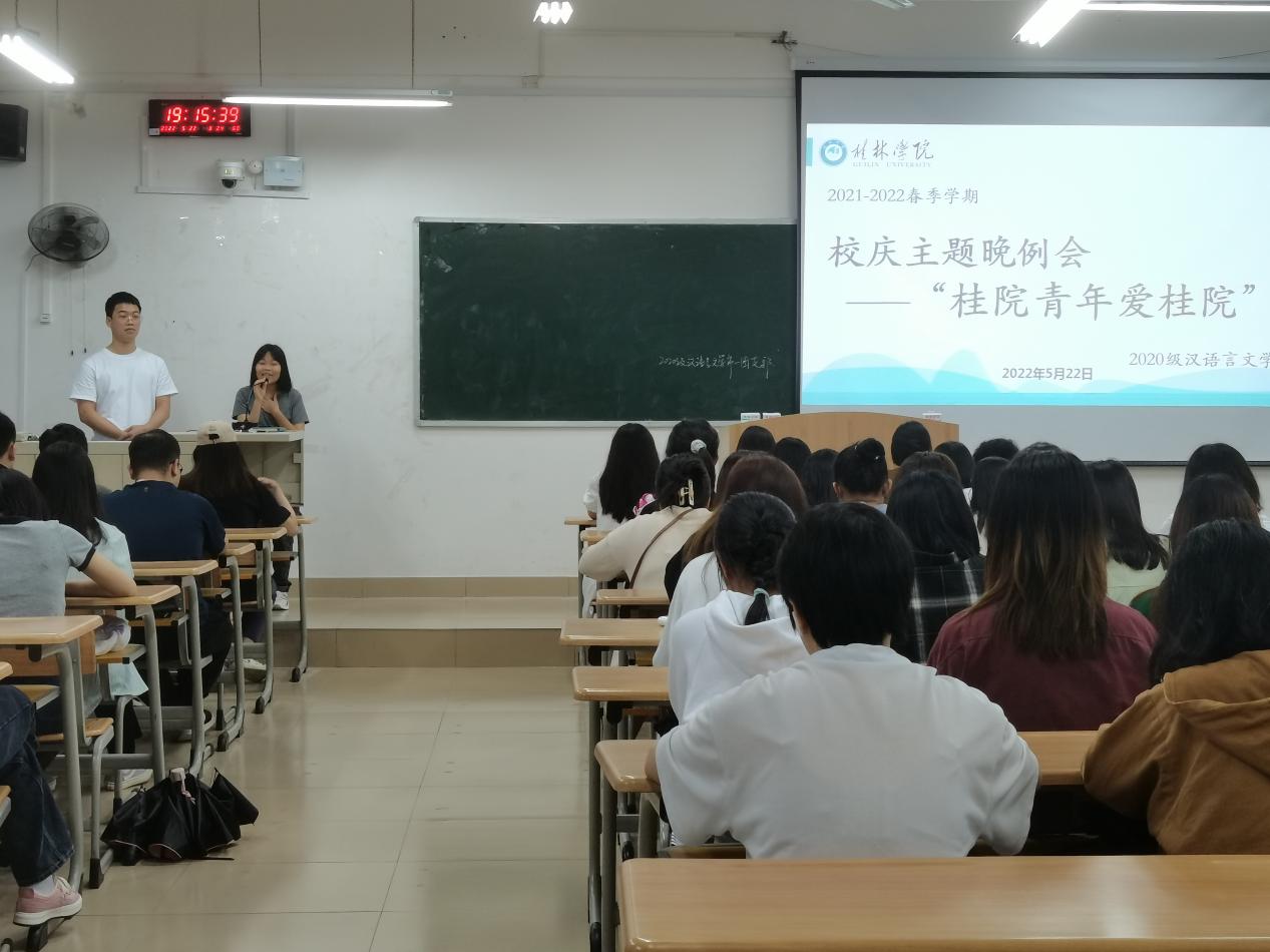 五月携一缕浅夏的芬芳悄然而来,桂林学院迎来建校二十一周年华诞。为迎接校庆、传承校风、弘扬桂院“向学、向善、自律、自强”的校训精神。5月22日晚,语言文学学院组织全体学生开展以喜迎建校二十一周年校庆主题晚例会。