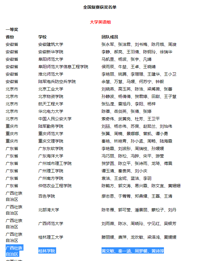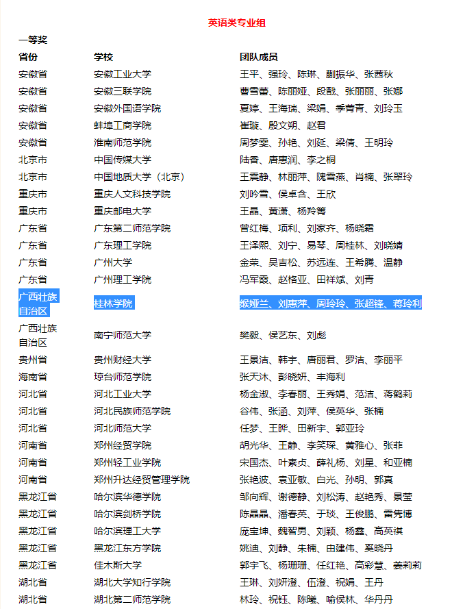图2022年外研社“教学之星”全国复赛获奖名单 大学英语组一等奖部分截图