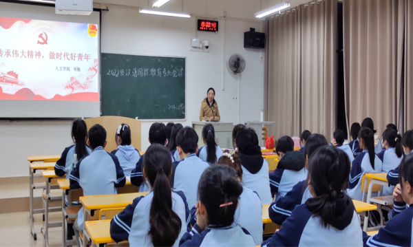 为深入学习贯彻党的二十大精神,增强同学们的爱党、爱国、爱家乡、爱人民的情怀和责任感,进一步传承伟大精神。2022年12月11日晚七点,2022级汉语国际教育团支部邀请学院党总支副书记韦微老师在1502教室开展“传承伟大精神,做时代好青年”为主题的党课活动,全体同学参与本次党课学习。