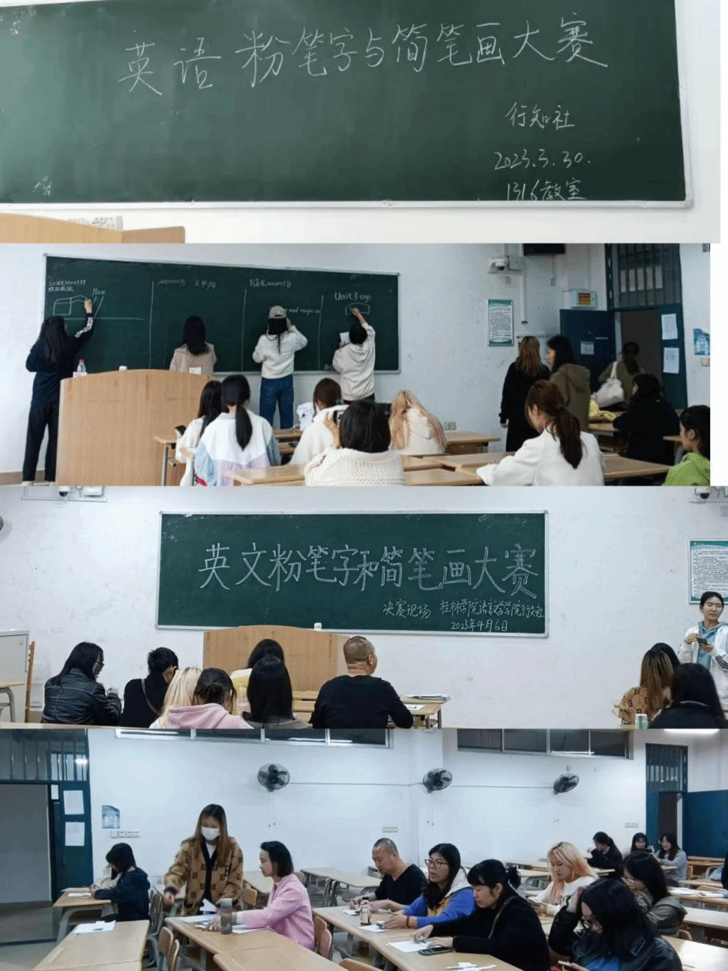 我校人文学院行知社主办了英语粉笔字与简笔画大赛。本次比赛总共分为三场进行,第一场是线上预选赛,3月23日作品照片收集截止。评委对作品进行评审,评选出了62个优秀作品。