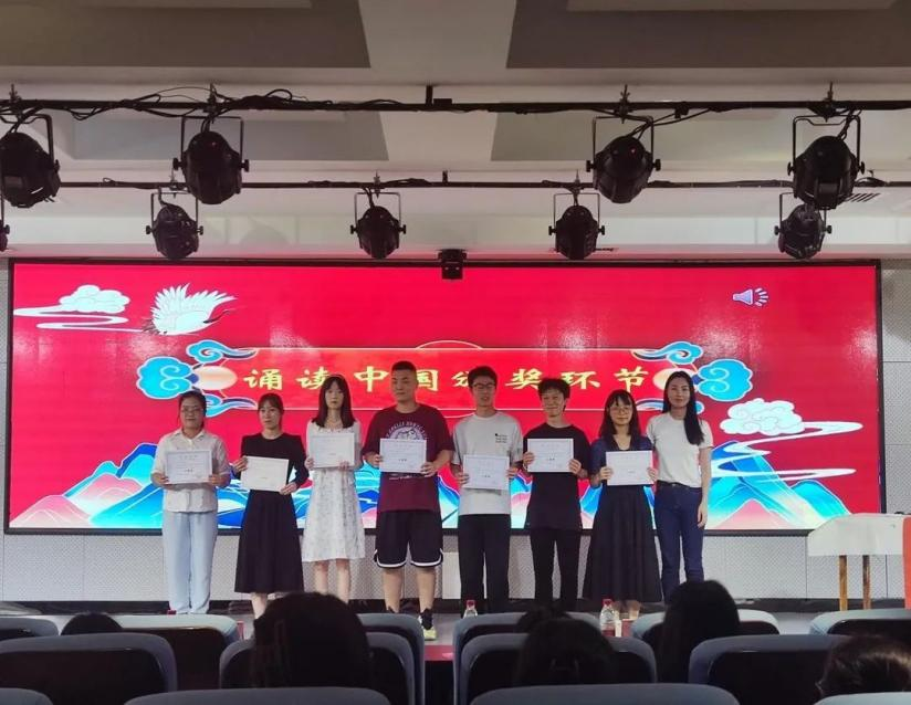大赛作品展演和颁奖环节,“诵读中国”优秀创作者通过声情并茂的朗诵,向观众展示文学经典篇目的动人魅力和旺盛生命力,同时表达出桂院学子的爱国主义情怀。“诗教中国”优秀创作者演出情绪饱满,带领观众感悟古诗词作品,激发观众对古诗词及中华传统文化的热爱与向往。随后,胡又嘉和钟锟老师分别对“诵读中国”和“诗教中国”的获奖同学进行颁奖。