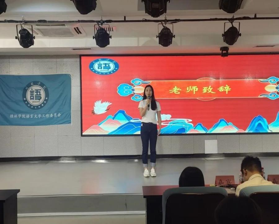为贯彻落实党的二十大精神,传承弘扬中华优秀文化,展示我校第二届中华经典诵写讲系列大赛优秀作品,同时对优秀创作者进行表彰,桂林学院语言文字工作委员会于5月17日晚在至善讲堂开展中华经典诵写讲系列大赛优秀作品展演活动。桂林学院传媒与新闻学院副院长胡又嘉,校语委指导老师钟锟、邓克鹏、何一亿出席活动,校语委全体同学及演出人员参加了本次活动。