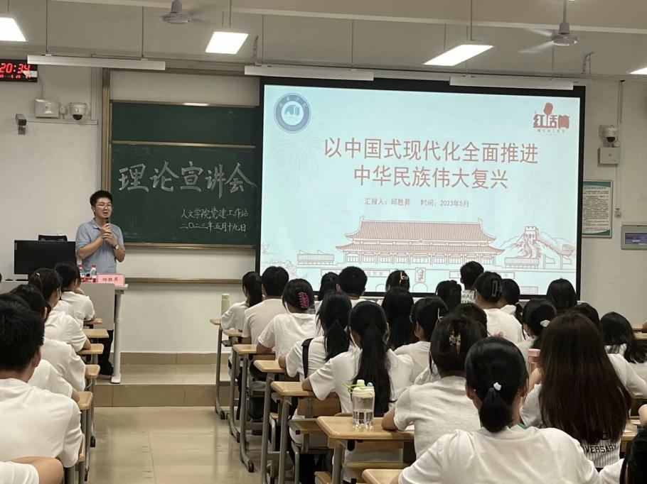 为学习贯彻习近平新时代中国特色社会主义思想,进一步提升党性修养,5月19日,人文学院邀请红话筒理论宣讲辅导员工作室邱胜昇老师为学院春季学期入党积极分子和发展对象进行党的二十大精神专题宣讲。