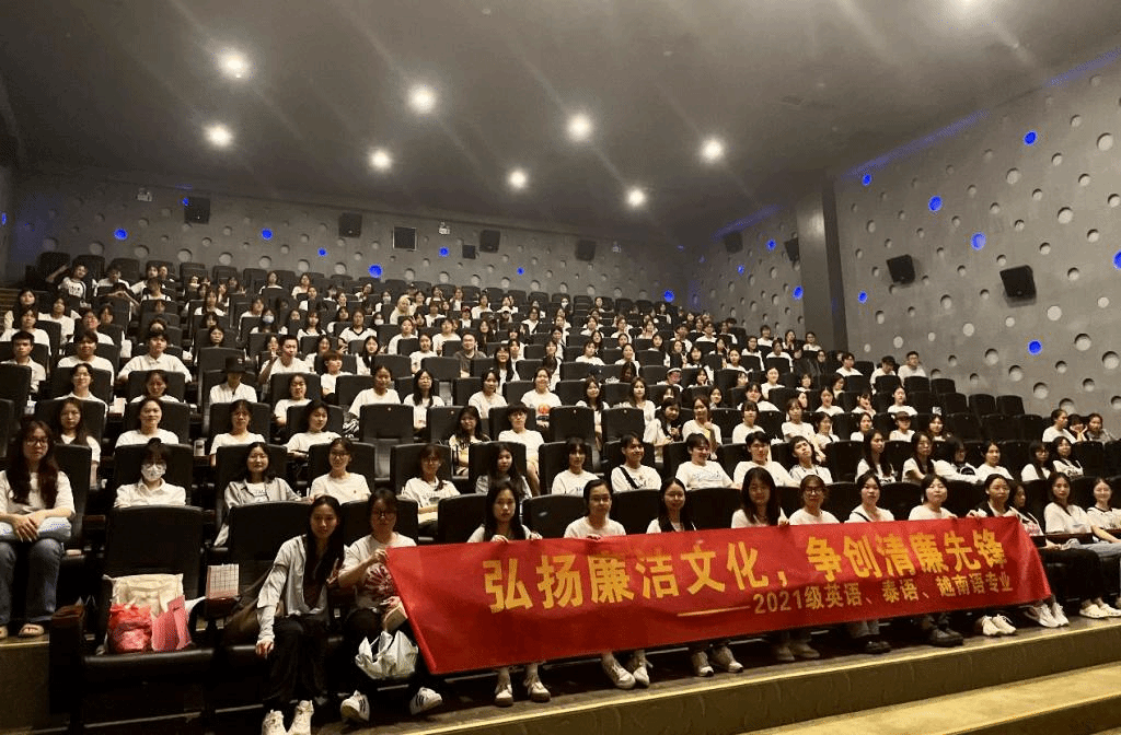 清风拂大地,廉洁驻神州。5月28日,人文学院2021级英语第一团支部、第二团支部及越南语泰语团支部全体成员共赴雁山大学城金雁国际影城开展“弘扬廉洁文化,争创廉洁先锋”主题团日活动,通过观看影片《扫黑决战》激励全体成员树立廉洁意识,强化责任担当,营造风清气正、崇廉尚廉、遵规守纪的良好氛围。