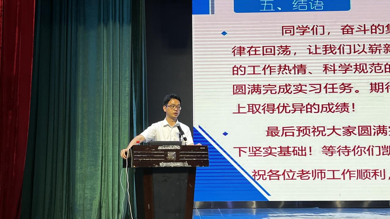 图:学院实习指导教师代表潘冠海教授发表实习赠言及要求