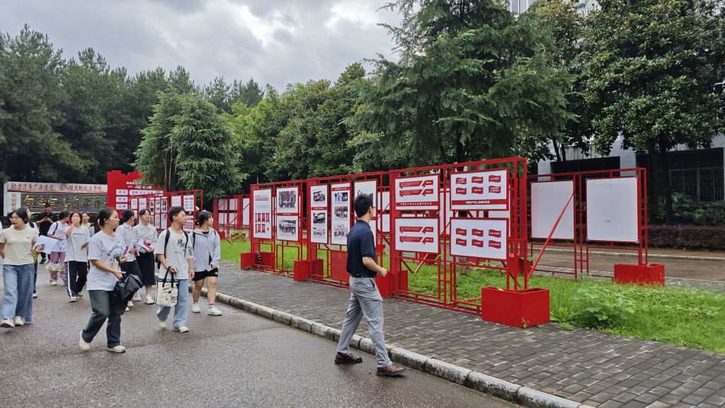 随后,全体党员一起参观学校党建文化长廊,庞一飞向新党员们介绍中国共产党的光辉历史和学校党建工作的主要成果。